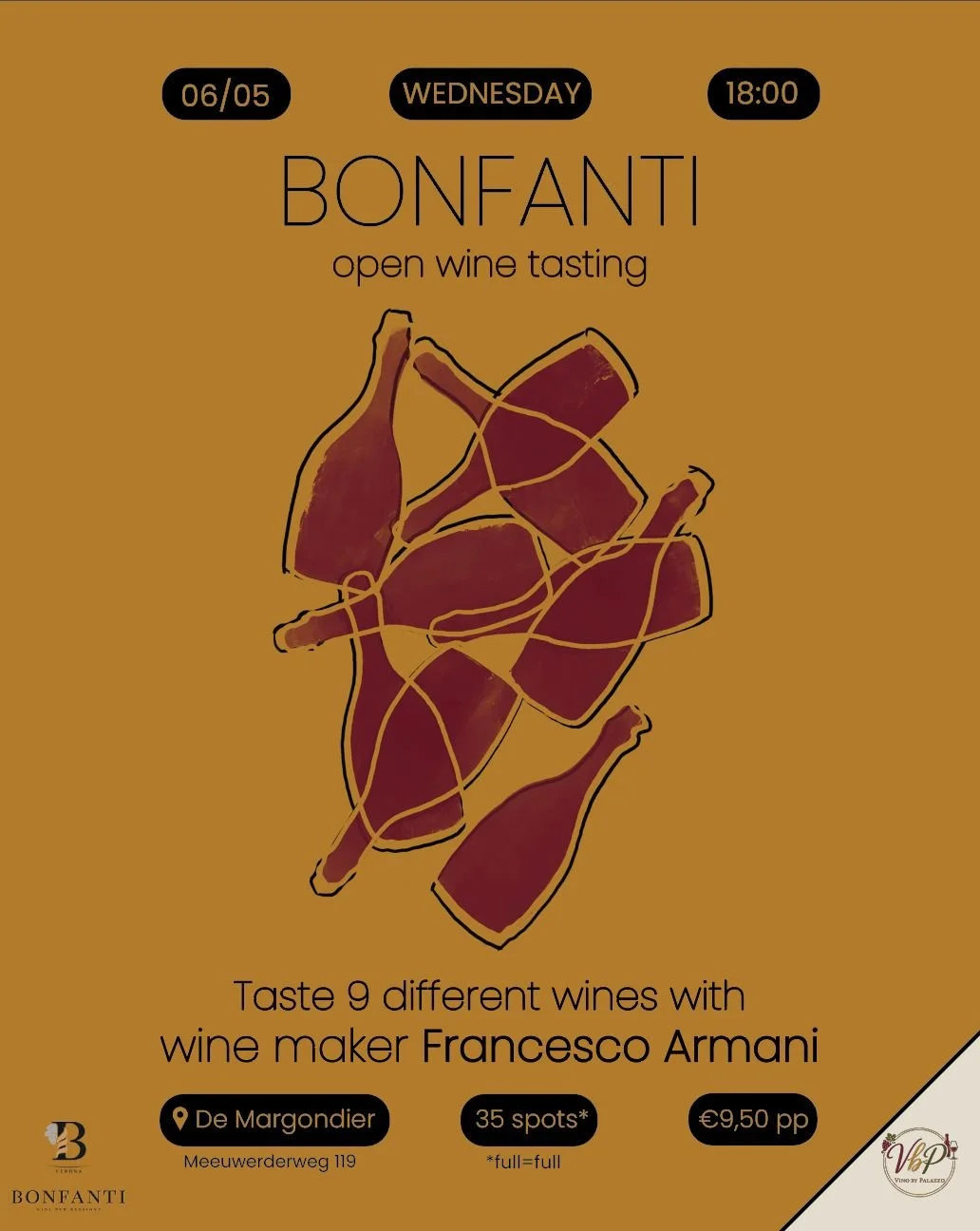 Op 6 mei ontvangt Vino by Palazzo de wijnmaker zelf voor een unieke proefervaring in Groningen. Tijdens deze avond is Francesco Armani van Bonfanti persoonlijk aanwezig om het volledige assortiment te presenteren. Van frisse Prosecco tot krachtige Amarone della Valpolicella, alle wijnen staan open om te proeven.